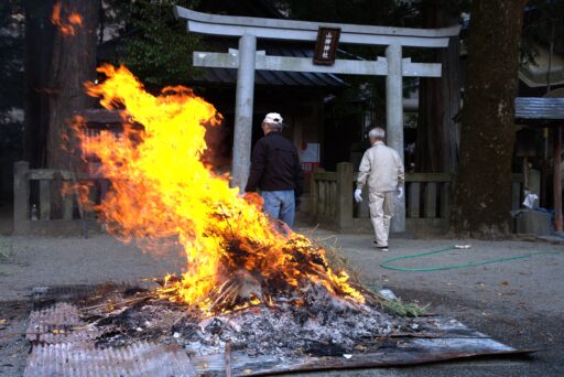 お正月のお飾りなどをお焚き上げすることで、無病息災を祈願します。
