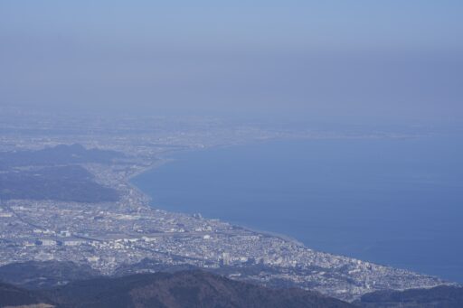 元宮の右側からは小田原市内や相模湾が一望できました。また、三浦半島の奥には房総半島の姿も見えました。