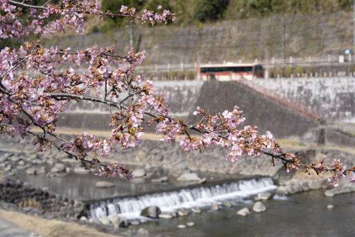 箱根湯本駅周辺の「桜」が花をつけています。