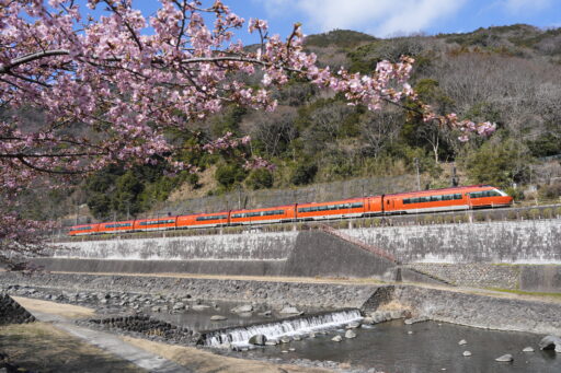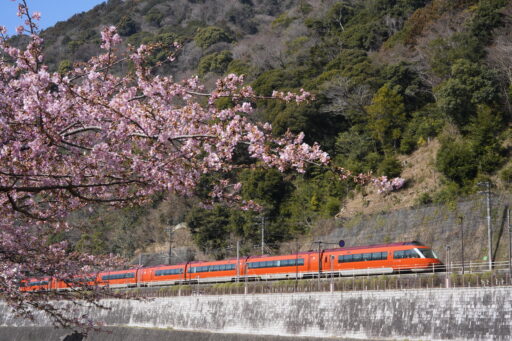 ロマンスカーの撮影場所から動いてしまっていたので、桜が陰になってしまいました。
