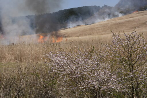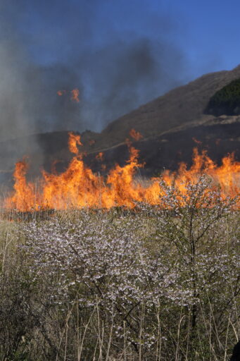 この時期にずれたことで、桜と山焼きを一緒に撮ることができました。