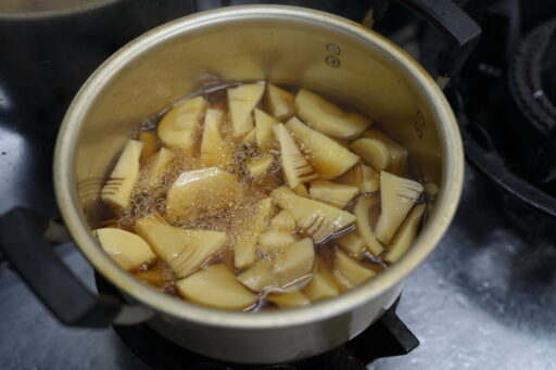 最後に一口大に切ったタケノコをお醤油などで煮れば、